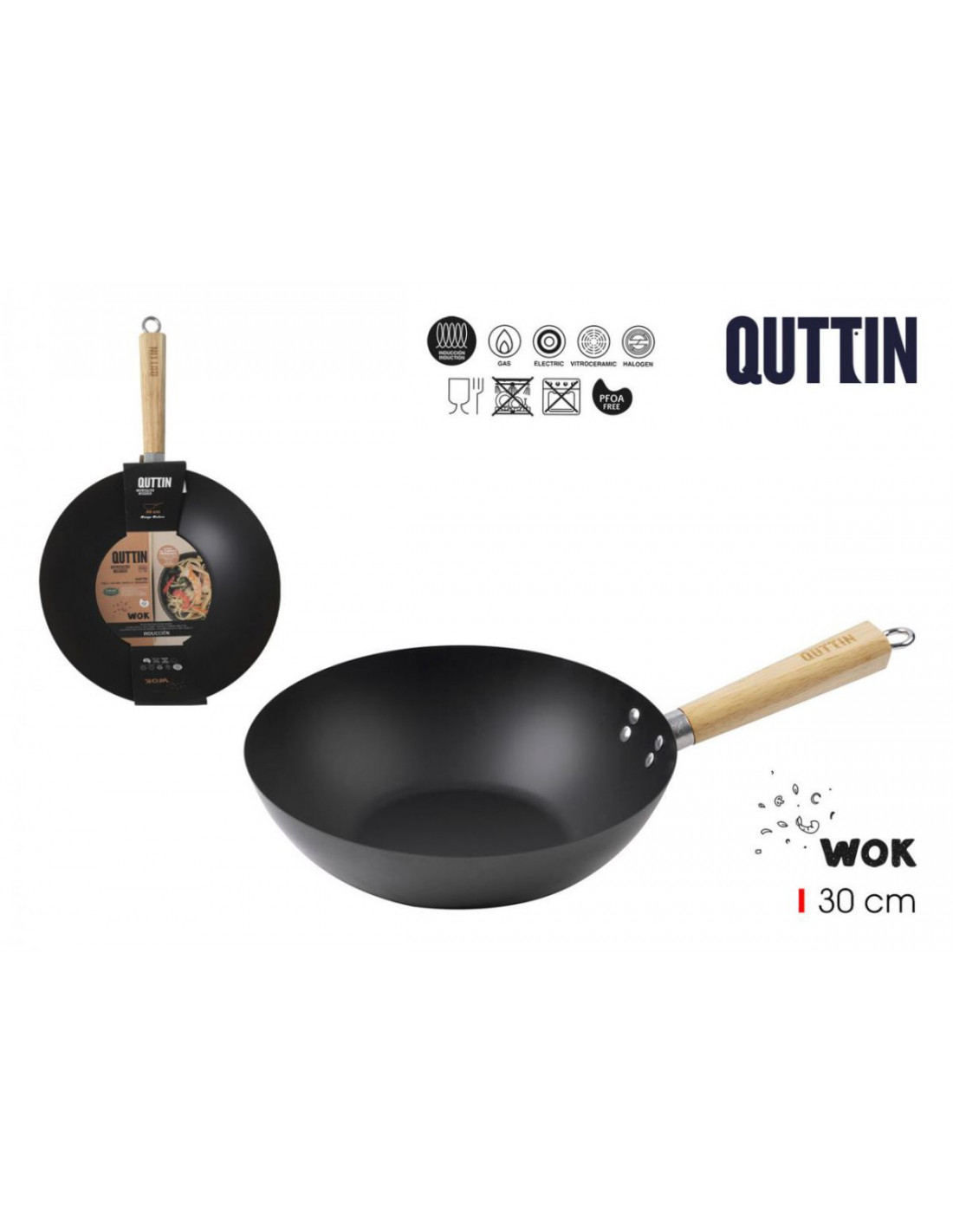 SARTEN WOK MANGO MADERA 30CM QUTTIN